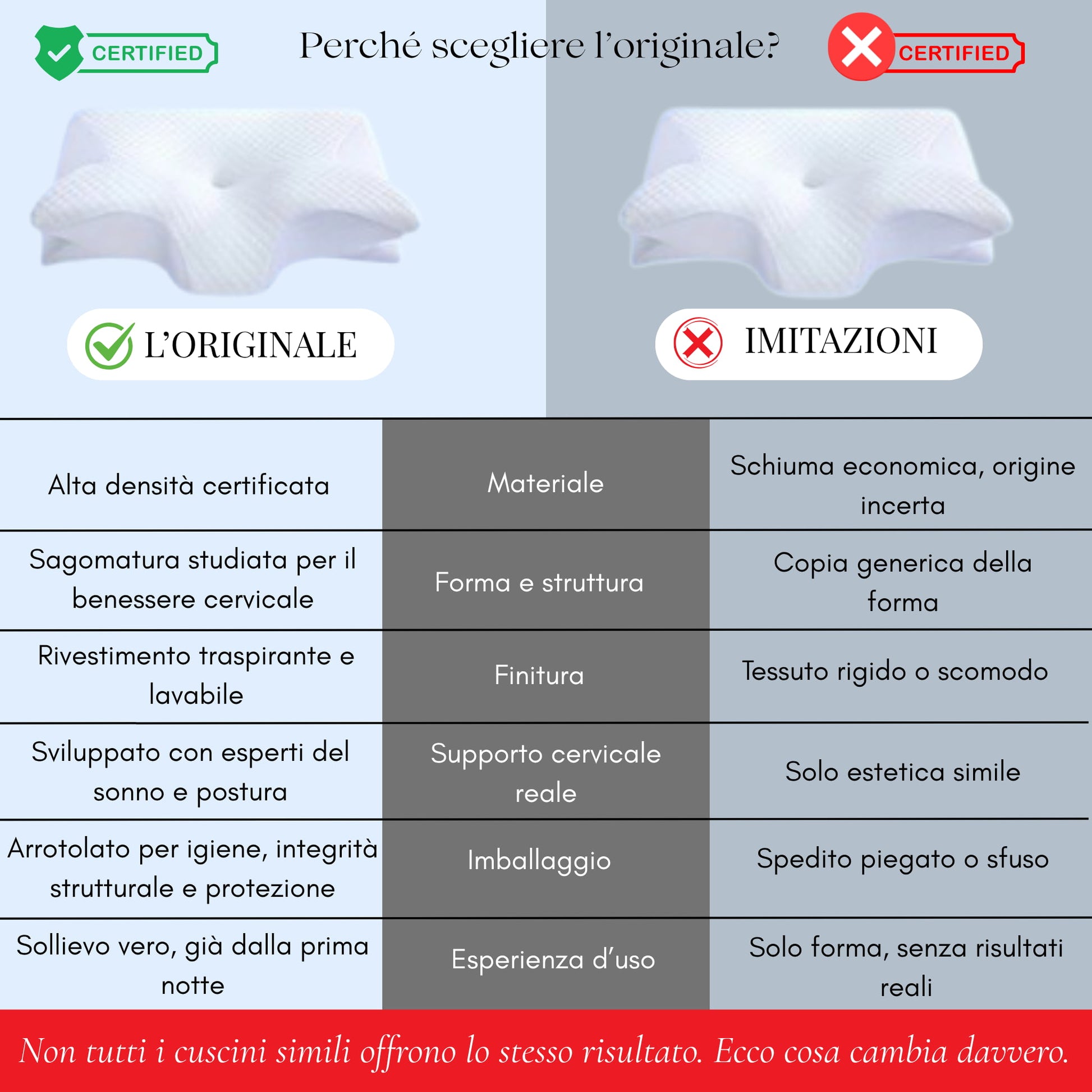 È il risultato di studi reali sul benessere posturale e sul riposo notturno. Mentre molti “simili” offrono solo forma, noi offriamo risultati. Scegli la qualità, scegli l’originale.