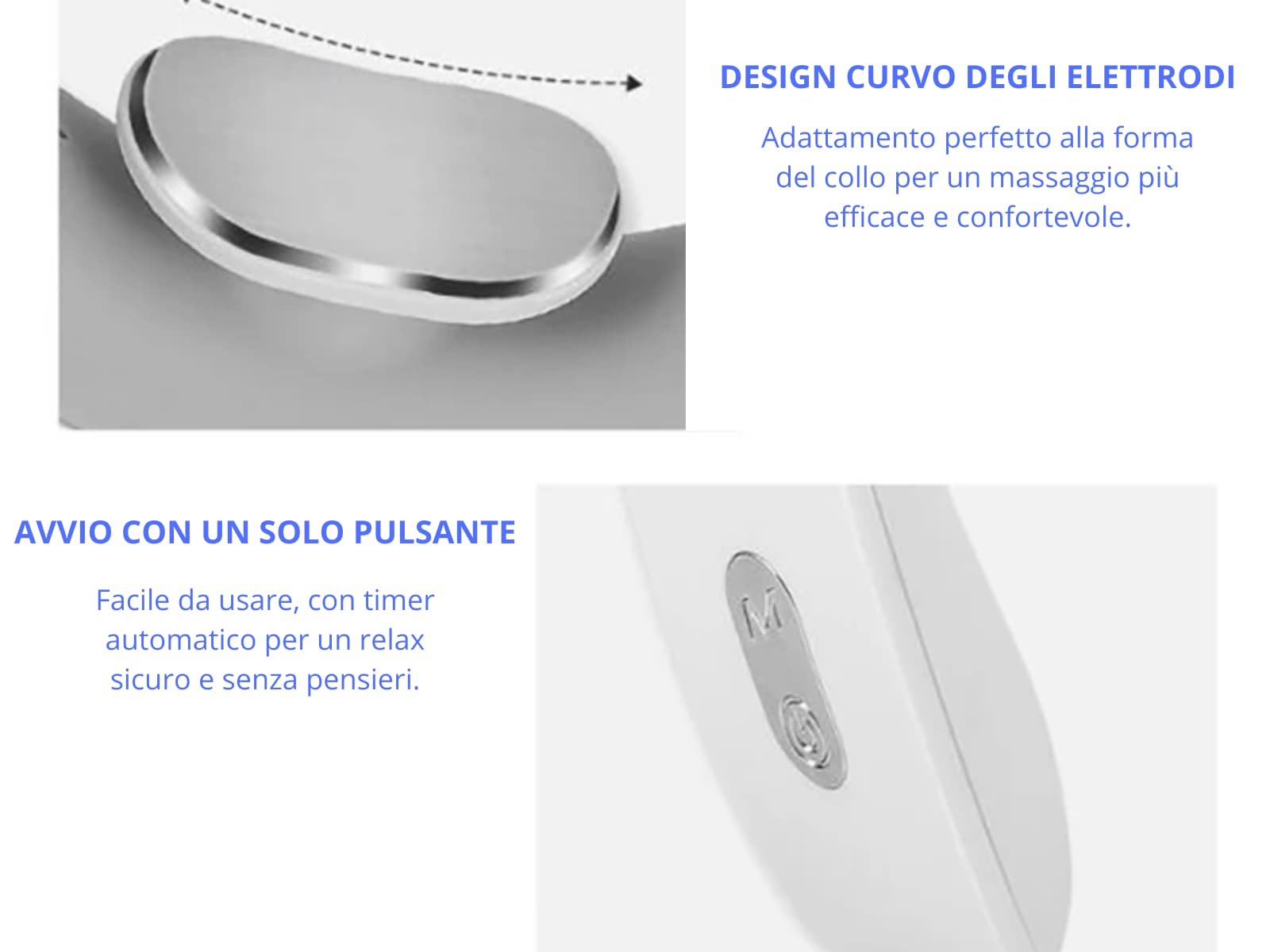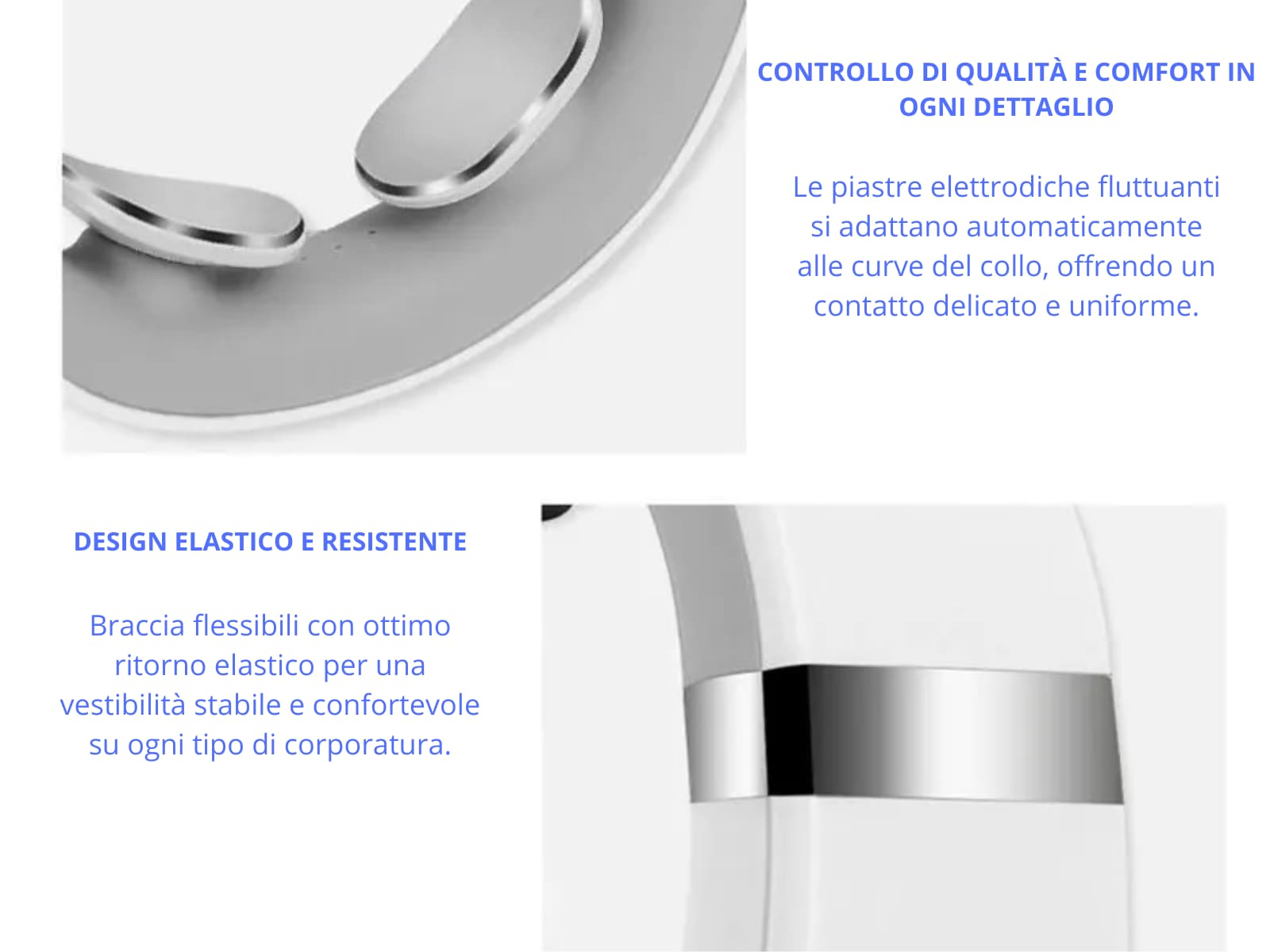 - Contatto perfetto con il collo: piastre elettrodiche auto-adattanti per una stimolazione uniforme.